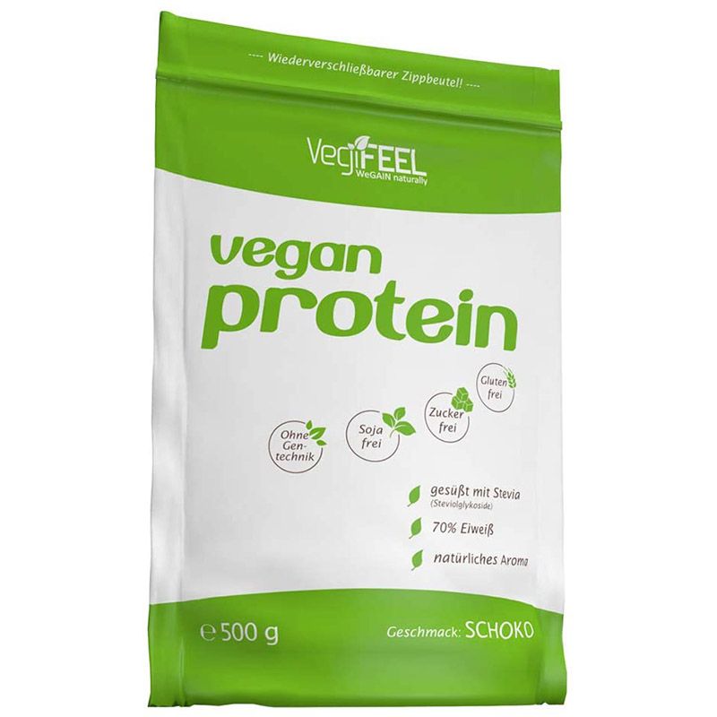 Was hat es mit dem VegiFeel Vegan Protein auf sich? In der heutigen Zeit werden immer mehr Menschen Vegetarier und Veganer, trotzdem möchten die Menschen einen sportlichen und gesunden Lebensstil beibehalten und sich proteinreich ernähren. Denn in Verbindung mit Kraftsport kann der Körper eine erhöhte Proteinzufuhr aufweisen und gerade wenn man auf tierische Eiweißquellen verzichten muss kann es sehr schwierig sein seinen Eiweißbedarf ohne Nahrungsergänzungsmittel zu decken. Die Firma VegiFeel hat sich genau auf diese Kunden im spezialisiert. Beim Vegan Protein von VegiFeel handelt es sich um ein rein pflanzliches 4 Komponenten Pflanzen-Protein ohne Soja Protein. Es wurde mit Absicht kein Sojaprotein zu den Inhaltsstoffen hinzugefügt, denn für viele gilt Sojaprotein als minderwertige Eiweißquelle. VegiFeel setzt hier nur äußerst hochwertige Eiweißquellen wie Erbsen-, Reis-, Johannisbrotkeimlings- und Hanfprotein ein. Selbst beim Süßstoff wählt der Hersteller eine Variante auf Pflanzenbasis: Stevia. Das Vegan Protein ist in zwei leckeren Geschmacksrichtungen erhältlich: neutral mit einer dezenten Vanillenote und Kakaogeschmack. Beides Geschmäcker schmecken sehr natürlich und sind selbstverständlich Gluten-, Zucker- und Aspartamfrei, frei von Konservierungsstoffen, künstlichen Geschmacksverstärkern und Allergenen. Man kann erkennen das sich die Natürlichkeit bei den Produkten von VegiFeel wie ein roter Faden durch die Produktpalette. Die wichtigsten Fakten im Überblick 4 Komponenten Pflanzen-Protein ohne Soja Garantiert ohne tierische Inhaltsstoffe 70 % – 75 % Eiweißgehalt natürlicher Geschmack Ohne Gentechnik Gluten-, Zucker- und Aspartamfrei Wem empfehlen wir das Vegan Protein von VegiFeel? Wir können das Vegan Protein von VegiFeel insbesondere Menschen empfehlen die sich vegan- bzw. vegetarisch ernähren. Des Weiteren eignet es sich besonders für Nutzer die einen besonders hohen Wert auf Natürlichkeit bei den Nahrungsergänzungsmitteln legen. Sprich man möchte Gentechnik, Gluten, Zucker, Aspartam oder andere unnatürliche Inhaltsstoffe vermeiden. Durch die 4 Komponenten Plant-Based Protein Matrix eignet es sich ebenso hervorragend für alle Fitness- und Kraftsportler die einen erhöhten Proteinbedarf an den Tag legen.