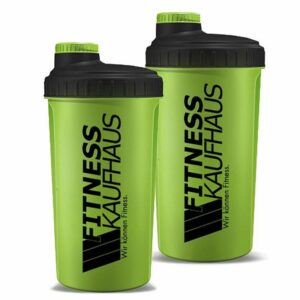 Fitnesskaufhaus Shaker Grün/Schwarz Für jeden Fitnessfan ein Muss: Der Fitnesskaufhaus Shaker! Qualitativ hochwertiger Shaker mit Schraubverschluss. Gefertigt aus besonders stabilen Kunststoff – wasserdicht, lebensmittelecht und spülmaschinenfest. Das Feinsieb im Shaker sorgt beim Schütteln für ein klumpenfreies Mixergebnis. 600 ml Füllmenge machen den Shaker zum idealen Begleiter für unterwegs. So kannst du jederzeit und überall dein Supplement genießen.